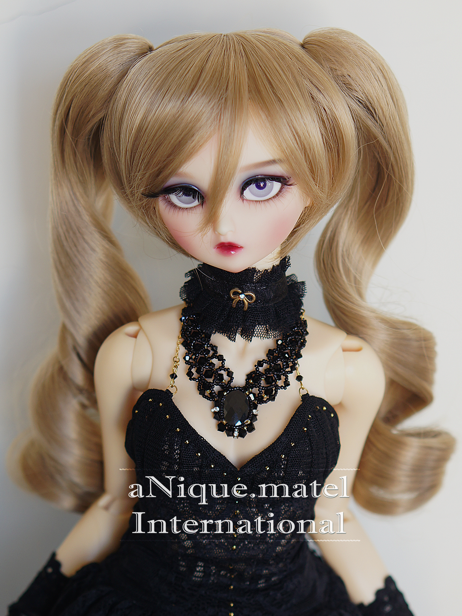 Include: Wig + one pair of long curls styling falls Material: Heat resistant fiber Suitable for: 22.9 - 25.4cm head size Model:Volks SDGr Cyndy (Head circumference: 23.1cm) Made in S. Korea